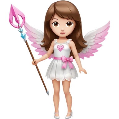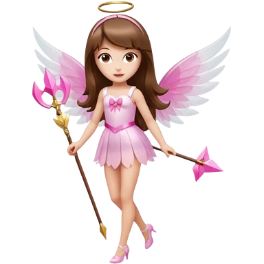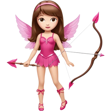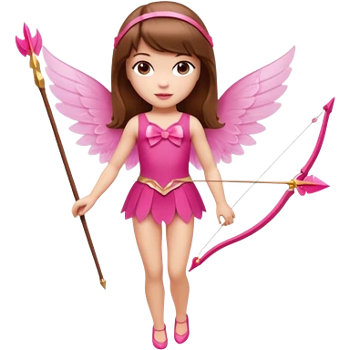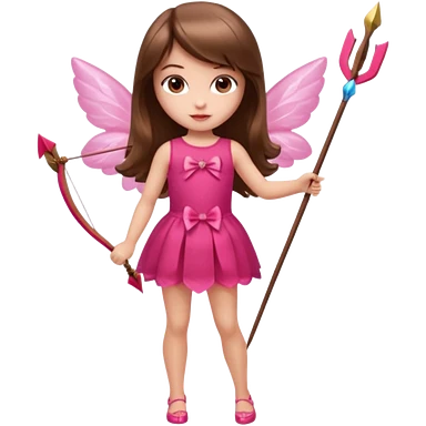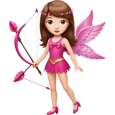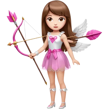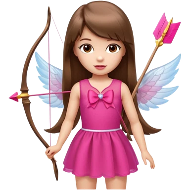 Hada sexy cupido pequeña de cabello largo lacio castaño claro con flequillo y ojos cafés vestida de top y falda roja y con arco y flechas cabello lacio labios rosas tipo Barbie pero en hada cupido emoji | AI Emoji Generator