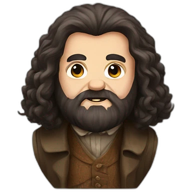Hagrid from Harry Potter depicted as wealthy, wearing luxurious robes, gold jewelry, and holding a money bag, emoji style emoji