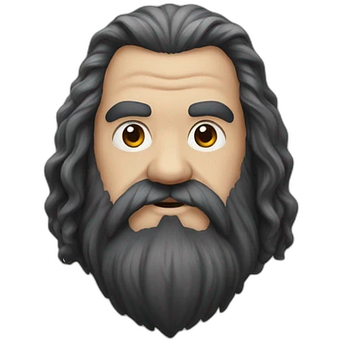 Hagrid from Harry Potter depicted as wealthy, wearing luxurious robes, gold jewelry, and holding a money bag, emoji style emoji