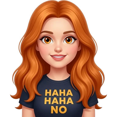 sexy girl with overlong ginger hair and ginger eyes a top with HAHA written on it emoji