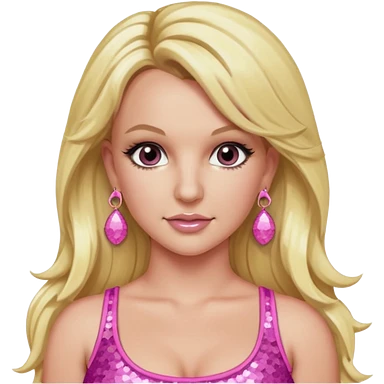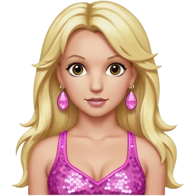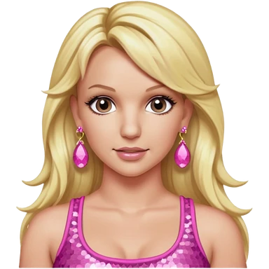 Britney Spears with long blonde hair, pink sequin crop top, pink earring emoji