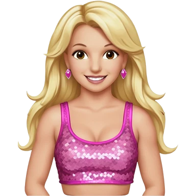 Britney Spears with long blonde hair, pink sequin crop top emoji