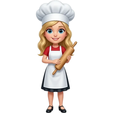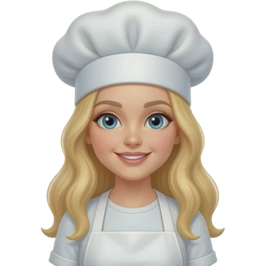 White girl long blond hair dressed in white chef hat and white apron, baking emoji