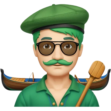 venice gondolier with green hair, iconic hat, glassess and mustache emoji