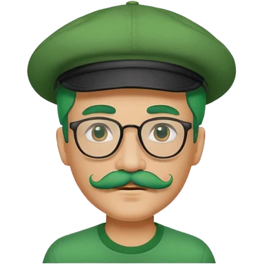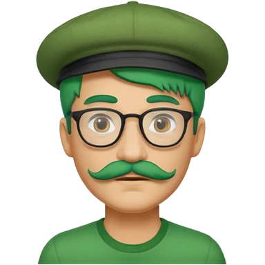 venice gondolier with green hair, iconic hat, normal glassess and mustache emoji