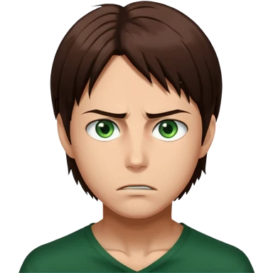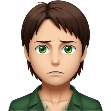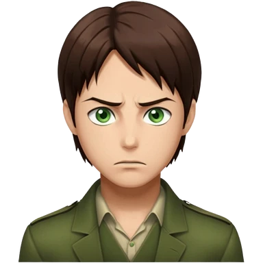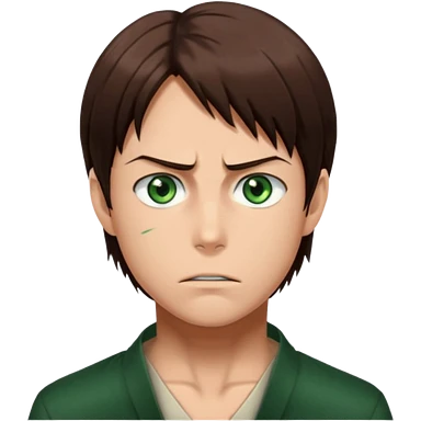 “Create an avatar that looks like Eren Yeager from Attack on Titan, Season 4 — sharp jawline, tied-back long brown hair, intense green eyes. Normal expression. emoji