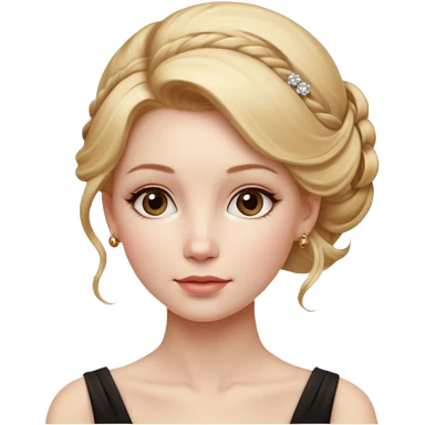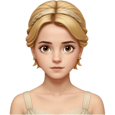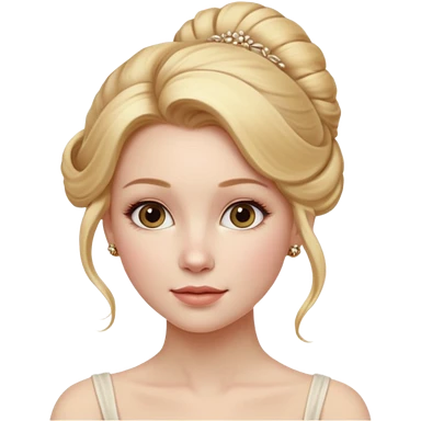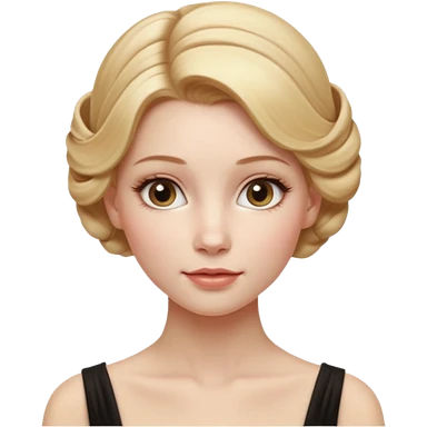 Hair: Long, straight, light blonde with darker undertones Eyes: Light-colored (possibly blue or hazel) Eyebrows: Well-defined and slightly arched Facial Shape: Oval with soft features Skin Tone: Fair/light complexion Expression: Big smile showing teeth, creating a happy and friendly lookemoji