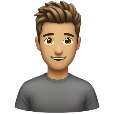 A young white boy with brown hair and eyes, with slightly long, straight and disheveled hair with wolfcut haircut, Make it look aesthetic, it's a trans boy emoji