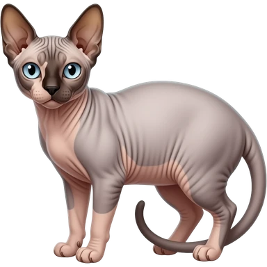 hairless Sphynx cat full body sitting, wearing a gold chain, winking emoji