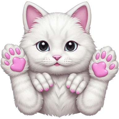 white cat fluffy paw, from the top, pink nails, cute emoji