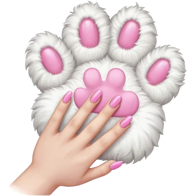 white fluffy paw, view from the top, pink nails, cute emoji
