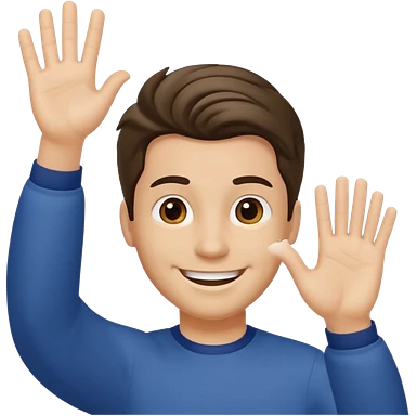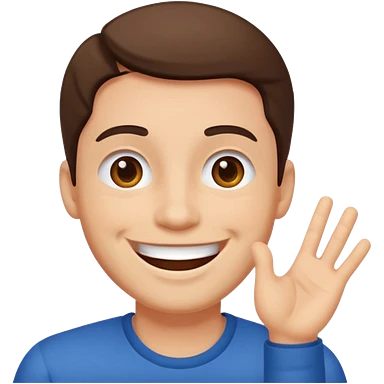 generate a emoji of man saying hii with normal skintone with some nice hair style with black-brown colour hair emoji