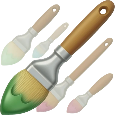 Metal painting icon, 3 paintbrushes beside it, minimalistic style, clean lines, transparent background. emoji