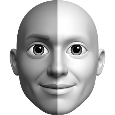 man with black and white hair, half black face, red horns, black hoodie, red wings, dragon skeleton, heart necklace emoji