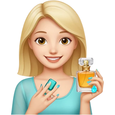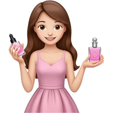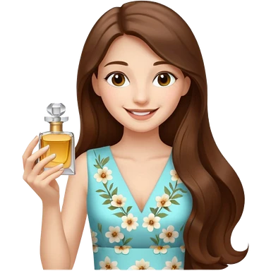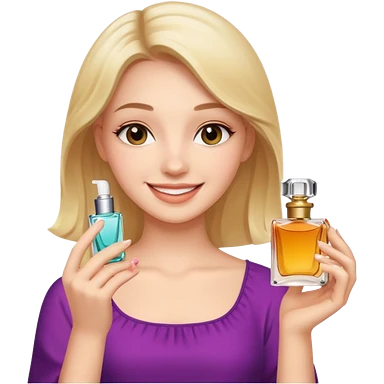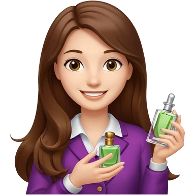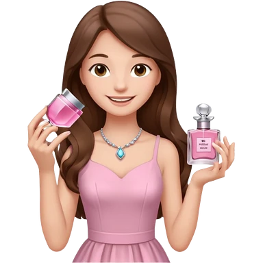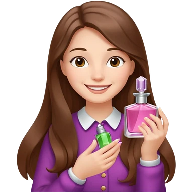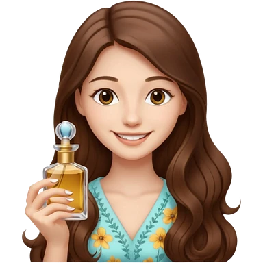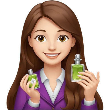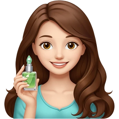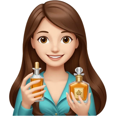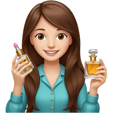Half body pretty long hair woman holding parfume emoji | AI Emoji Generator