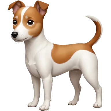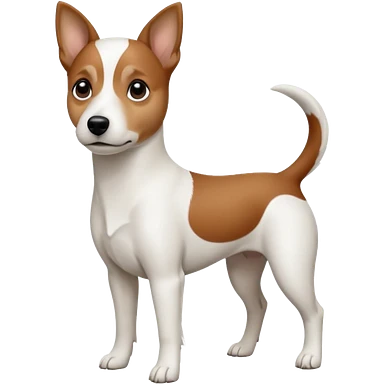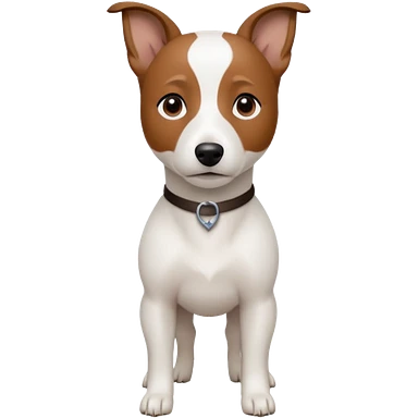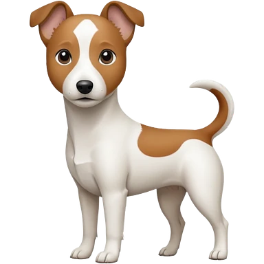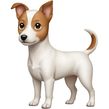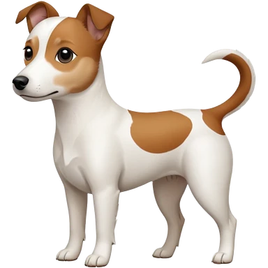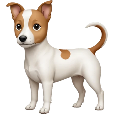 a fully white jack russell the size of a kelpie with a half white face emoji