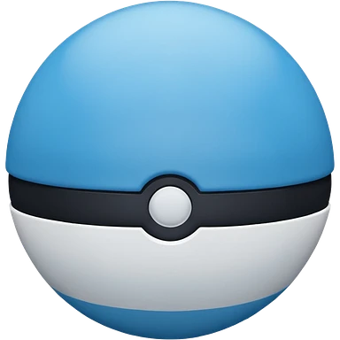 blue pokeball emoji, top half is a more saturated blue, bottom half is white, black stripe, with a white sheen, with a matte finish emoji
