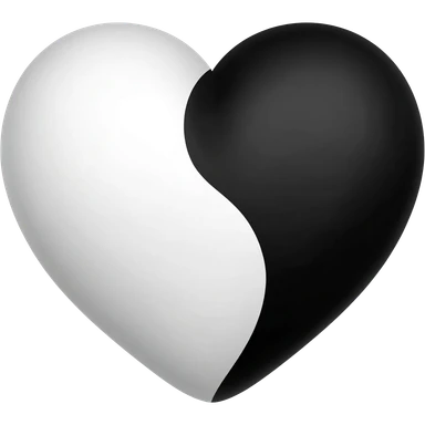 Yin and yang heart shape half black half white emoji