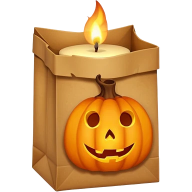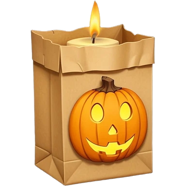 Halloween brown paper bag cutout with candle inside emoji | AI Emoji Generator