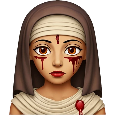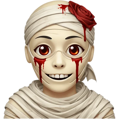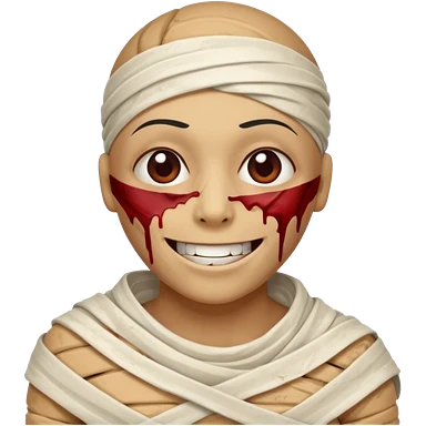 halloween mummy smiling without teeth and with blood stains emoji | AI Emoji Generator