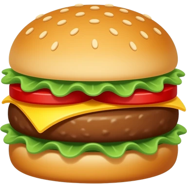 classic hamburger emoji with sesame seed bun, lettuce, tomato, cheese, beef patty emoji