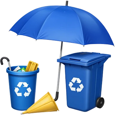 Blue umbrella by trash bin, Lost Umbrella. emoji