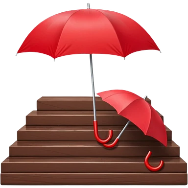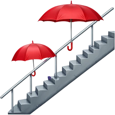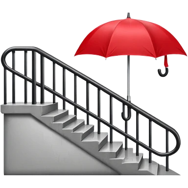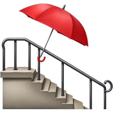 Red umbrella on stair railing, Lost Umbrella. emoji