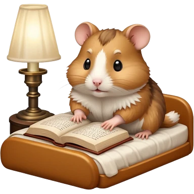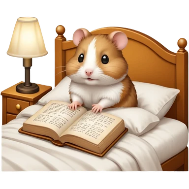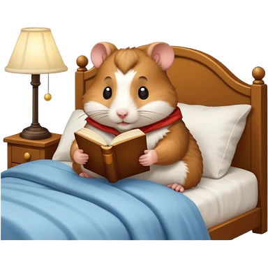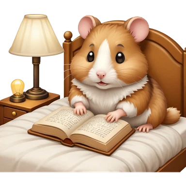 hamster reading in bed with retro light lamp next to it emoji