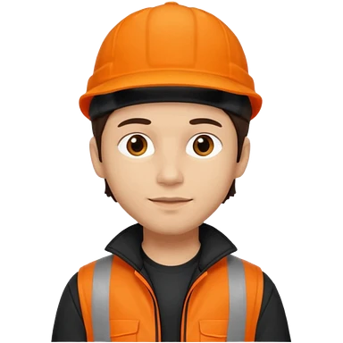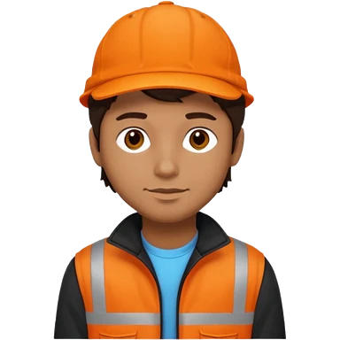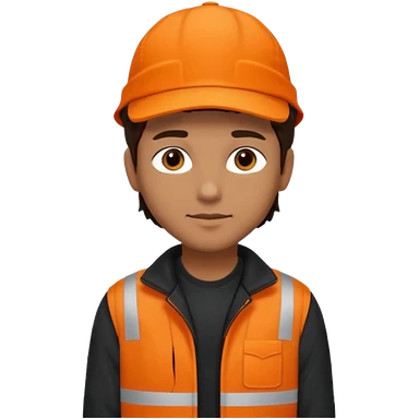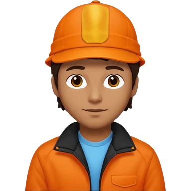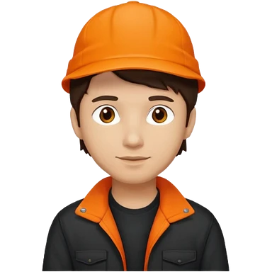 Kindly Keyin (male) with dark brown hair, orange cap and shirt, black jacket emoji
