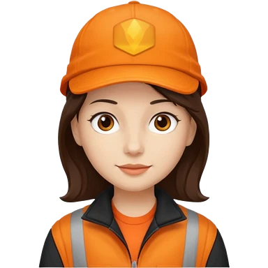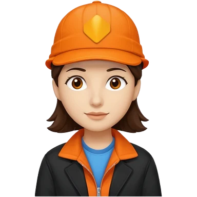 Kindly Keyin with dark brown hair, orange cap and shirt, black jacket emoji