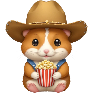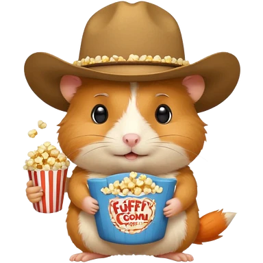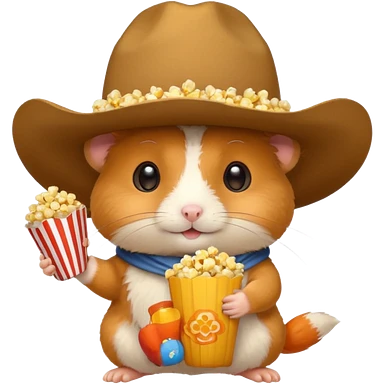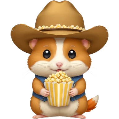 orange hamster holding pop corn, with cowboy hat emoji