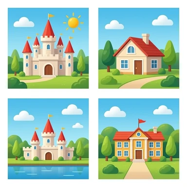 Cloud Castle – White castle resting on fluffy clouds emoji