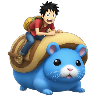 Luffy rides a giant blue hamster emoji