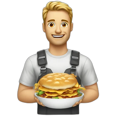 male software developer with blonde curly hair and blue eyes, smiling, simple and friendly emoji