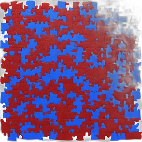 A colorful puzzle piece, a crossword magazine, a 3D puzzle, and a partially completed puzzle picture on a table. Bright colors, minimalist design, modern style. Transparent background, suitable for puzzles and brain games. emoji
