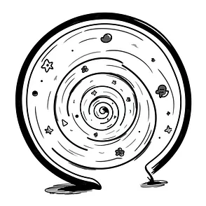 Hand-drawn metal man figure with a circular body divided into four segments, each containing symbols for different art forms: visual, musical, theatrical, and literary arts illustration | AI Emoji Generator