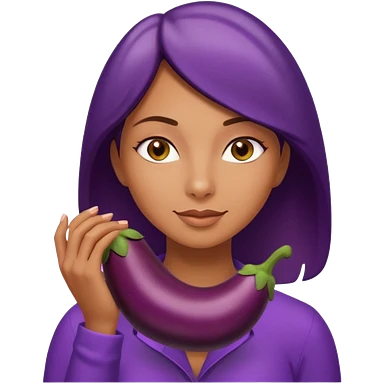 Girl with eggplant in hand emoji