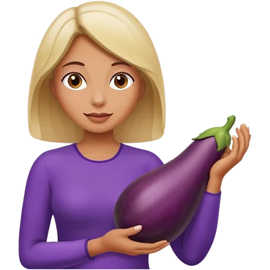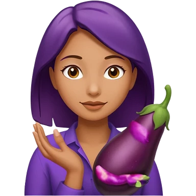 Woman with eggplant in hand emoji