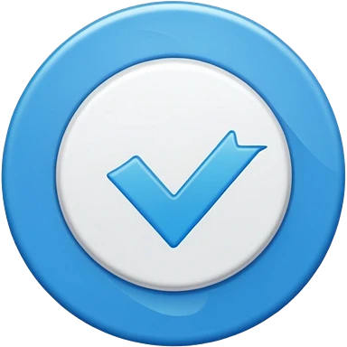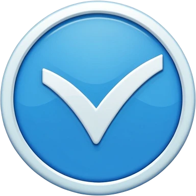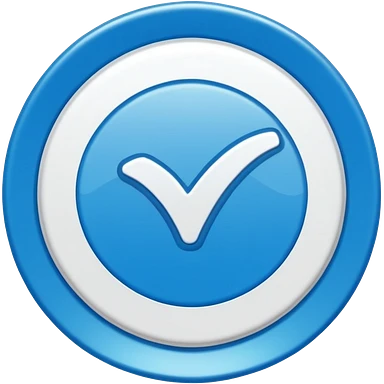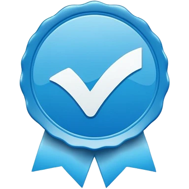 A bright blue circular badge with soft, sharp edges (like a seal or award ribbon). In the center, there is a white check mark (✓) tilted slightly to the right. The design feels clean, modern, and official, symbolizing verified, trusted, approved, or authentic status. emoji