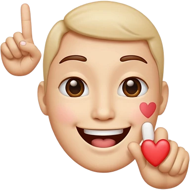 A Smiling Face with Smiling Eyes emoji with a hand korean finger heart emoji that has the middle finger sticking out emoji