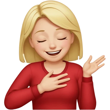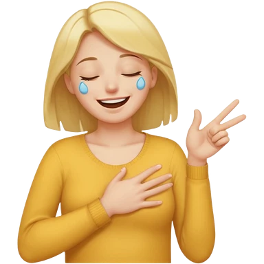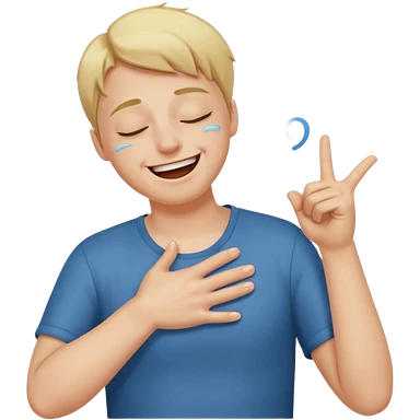 A person laughing with one hand pointing straight and one hand on his stomach emoji