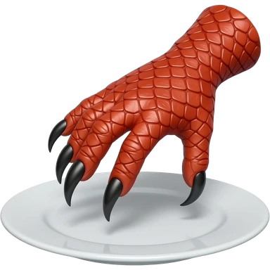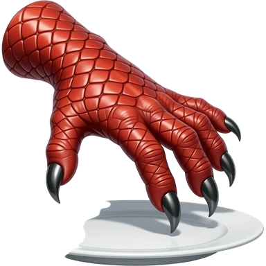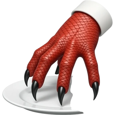 hand with red scales and black hooked claws pressing on a plate emoji