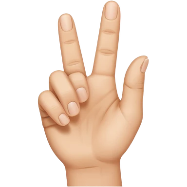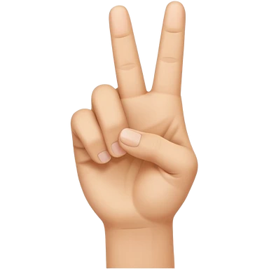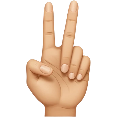The hand is raised, with the index finger and middle finger extended upwards; the last two digits are curled downwards against the palm. The thumb is shown slightly curled or raised. emoji
