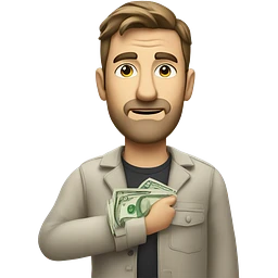Caucasian Man sticking out his hand with money and a scowl emoji