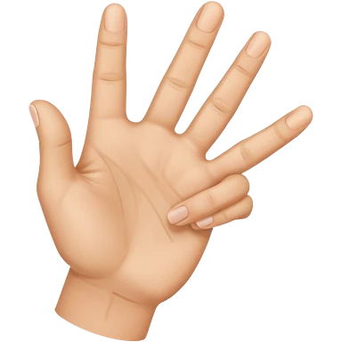 hand with three fingers raised: the index finger, middle finger, and thumb. The other fingers (ring and pinky) should be folded down. The style and color should match the standard ‘pointing up’ emoji (👆🏻), with the same skin tone and hand shape.”emoji