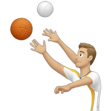Handballeur qui tire au poste de pivot devant un gardien emoji