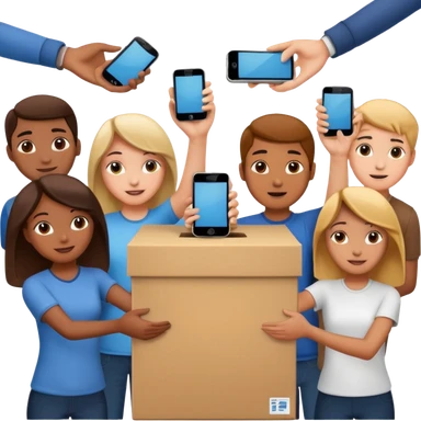 Students handing over their phones to a box emoji