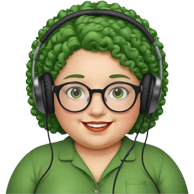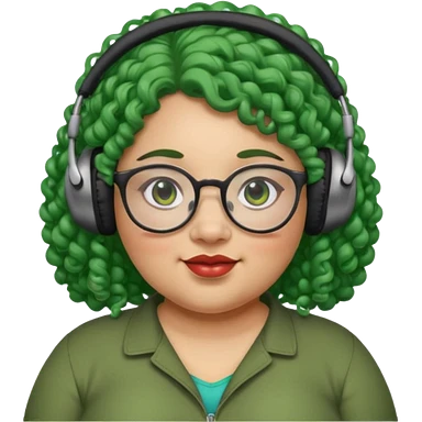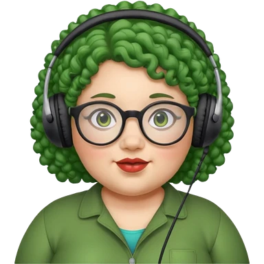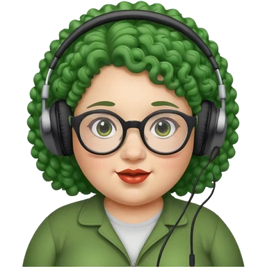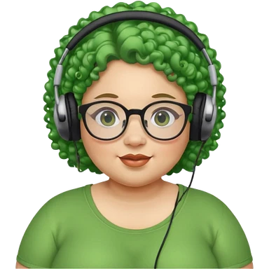headphone wearing and glassess and green curly haired fat girl emoji