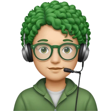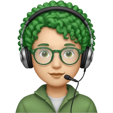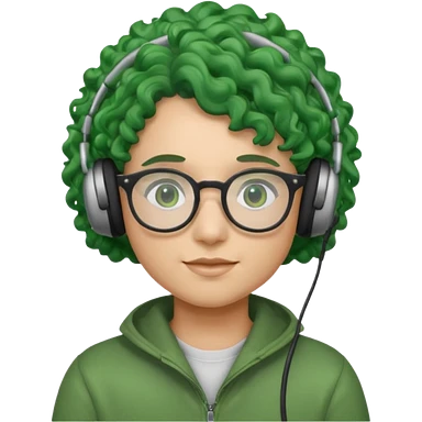 headphone wearing and glassess and green curly haired emoji