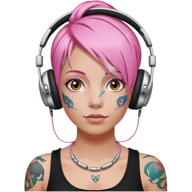 headphone and tattoes on face and pink haired emoji